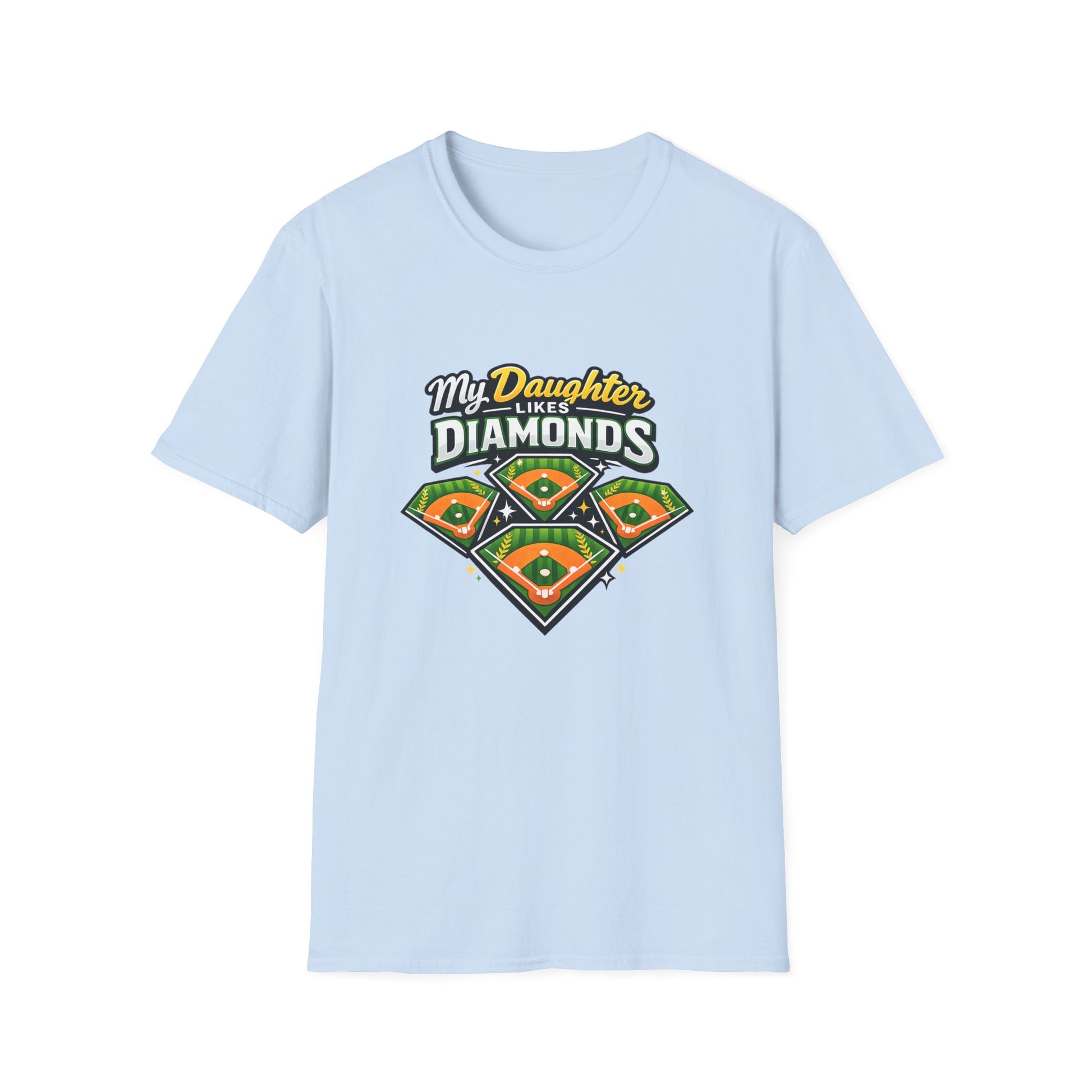 Wear this tee to every game, practice, and post-game drive home. Lightweight ring-spun cotton feels soft against the skin while the bold, sporty diamond graphic—stacked infields with bright green and orange accents—says exactly who you’re cheering for. The classic crew neck and clean fit layer easily under jackets or stand alone on warm nights. It’s the kind of shirt a proud parent reaches for when they want to shout support without saying a word: familiar, comfortable, and built to move with you as the season unfolds.